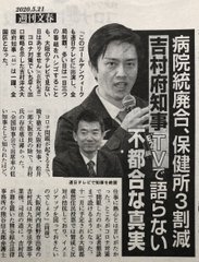 - 10:20:19 : マスコミも時流に流されずにここらでコロナ渦中の医療制度の気弱点をまとめればいいのにね。保健所削減、病床は足りても医師、看護師の不足、マスク、防護服などの感染予防の医療用品の不足。全て政治の問題なんじゃないの?
