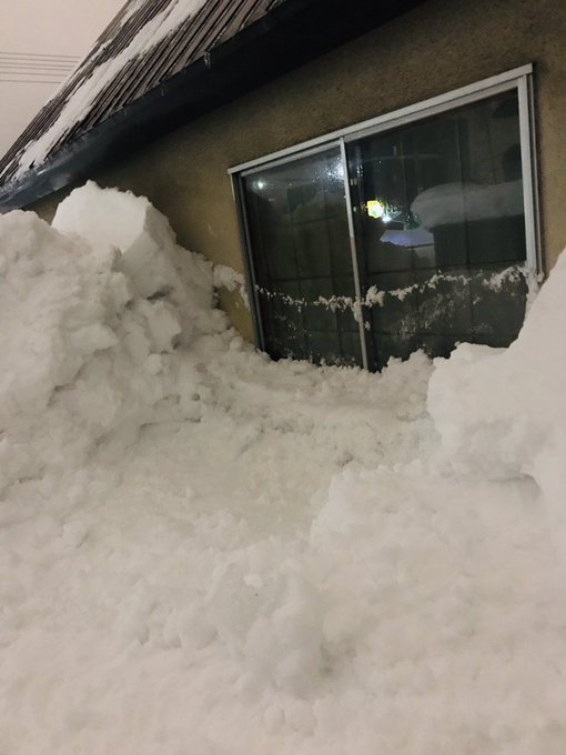 - 21:14:51 : 明日の雪に備えて、屋根の落雪が窓を破らないよう、窓枠除雪。窓の中ほどの雪の線まで積もっていたのだよ。窓枠下の氷は硬くて取れなかった。 pic.twitter.com