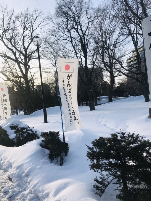 護国神社の幟、最後に「政府」だろうな。がんばろう!日本政府
