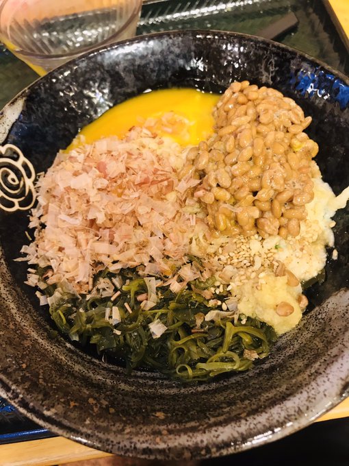 - 18:27:12 : とろろにめかぶ、納豆に鰹節。ねばねばうどんで栄養つける。 pic.twitter.com
